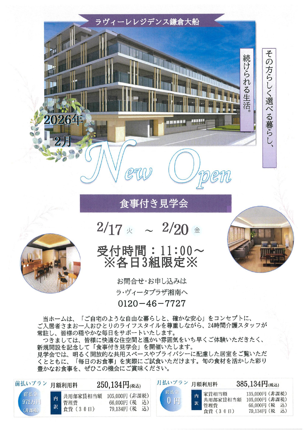 | お問い合わせ先 | ラ・ヴィータプラザ湘南 電話: 0120-46-7727 (担当:原) |